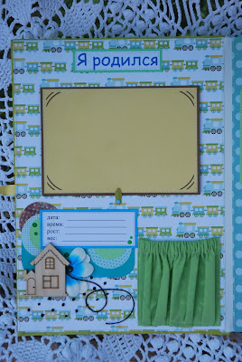 Итак,детский альбом для мальчика,бумага набор Echo Park Bundle of Joy,размер по обложке 21,5*30, 6 разворотов,2 тканевых кармана для бирки, карточек роста и достижений или дополнительных фото,вмещает 67 фото 10*15 и меньшего размера,можно больше,тк есть много кармашков для тегов