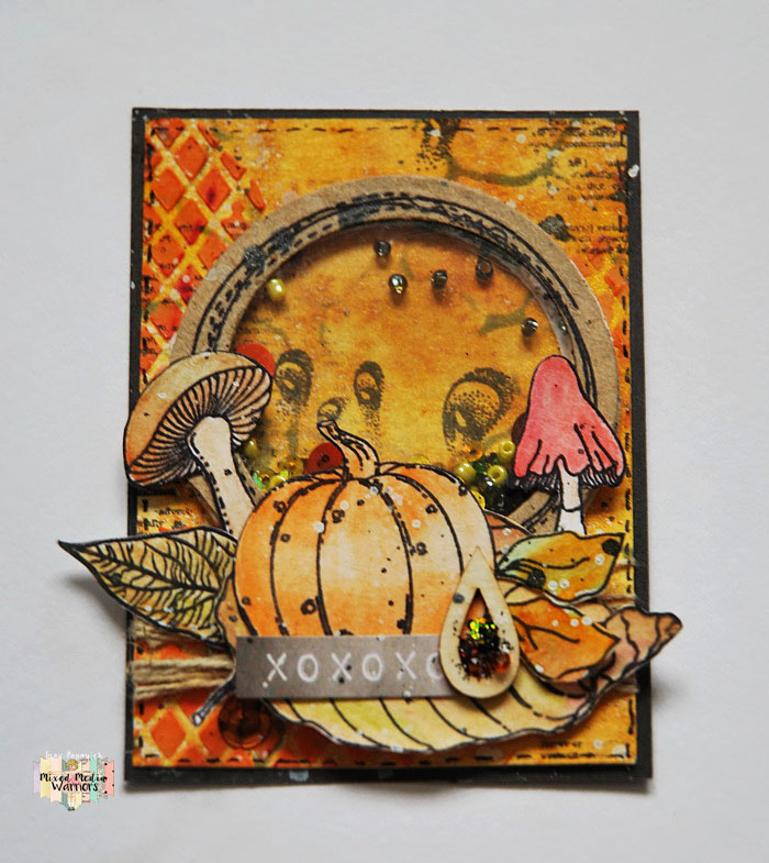 Побрызгала спреями.У меня это спреи от Lindy's Stamp Gang